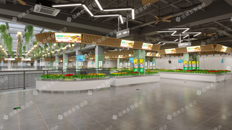 農貿市場改造布局需要科學合理化,重點突出實用性能。佰映設計師在進行規(guī)劃布局時,需要充分考慮不同業(yè)態(tài)對于消費者的購買力,將生活必需物資的業(yè)態(tài),如蔬菜、肉類等,安排在市場中心區(qū)域,或多層市場的高層區(qū)域,利用必需物資來經營好整個市場;將生活必須商品,如水果、鮮花等安排在市場入口處,吸引消費者的關注后產生購買心理。