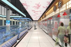地面必須防滑、耐水、易清潔,尤其在水產(chǎn)區(qū)要設(shè)置排水溝和防滑地磚;墻面建議使用防水、防霉、易擦洗的材料;吊頂應(yīng)簡潔耐用,避免復雜造型藏污納垢。照明方面,整體照度要充足,生鮮攤位還需重點補光,讓食材顏色真實自然。通風也很關(guān)鍵——封閉式市場必須安裝排風系統(tǒng),保持空氣流通,減少異味和濕氣積聚。