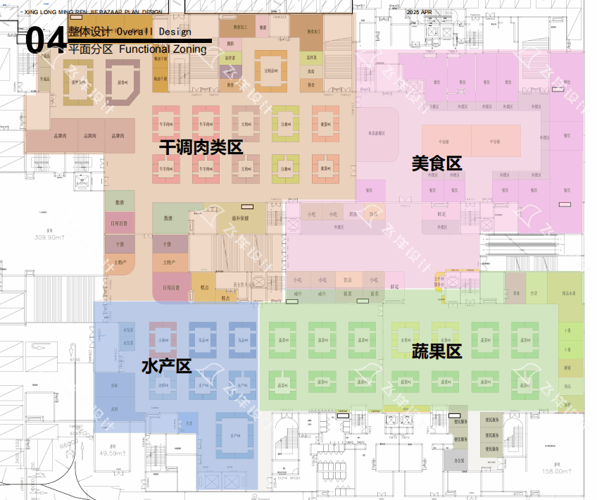 水產(chǎn)區(qū):左下角近貨梯,專用排水+ 獨立通風,物流便捷。