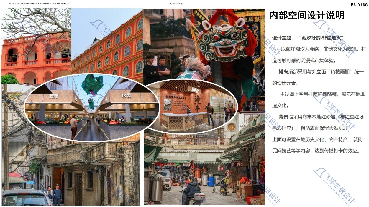 長合市集坐落于海豐縣傳統(tǒng)街區(qū),項目以"妙街食集"為主題,深度挖掘在地廟宇文化與嶺南建筑特色,通過IP形象打造、非遺活動植入與特色美食聚合,構建一個既能滿足日常采購需求,又能成為文化體驗目的地的創(chuàng)新型市集空間。